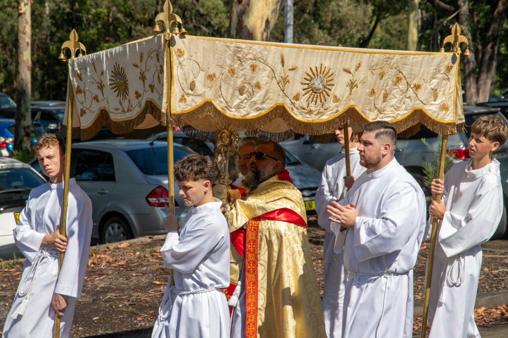 In a first for the Blue Mountains Deanery, members of the faithful walked with the Blessed Sacrament as it journeyed from the grounds of St Thomas Aquinas Primary School, Springwood, towards the parish church.