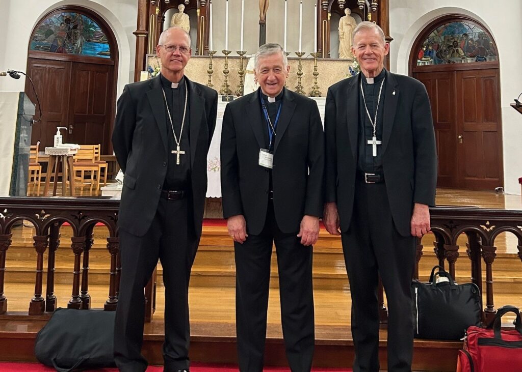 (L-R) Archbishop Paul Etienne, Archbishop of Seattle, Cardinal Blase Cupich, Archbishop of Chicago and Archbishop John Wester, Archbishop of Sante Fe during the Interreligious Symposium of Nuclear Issues and World Peace in Nagasaki. Image: Archdiocese of Seattle/Facebook