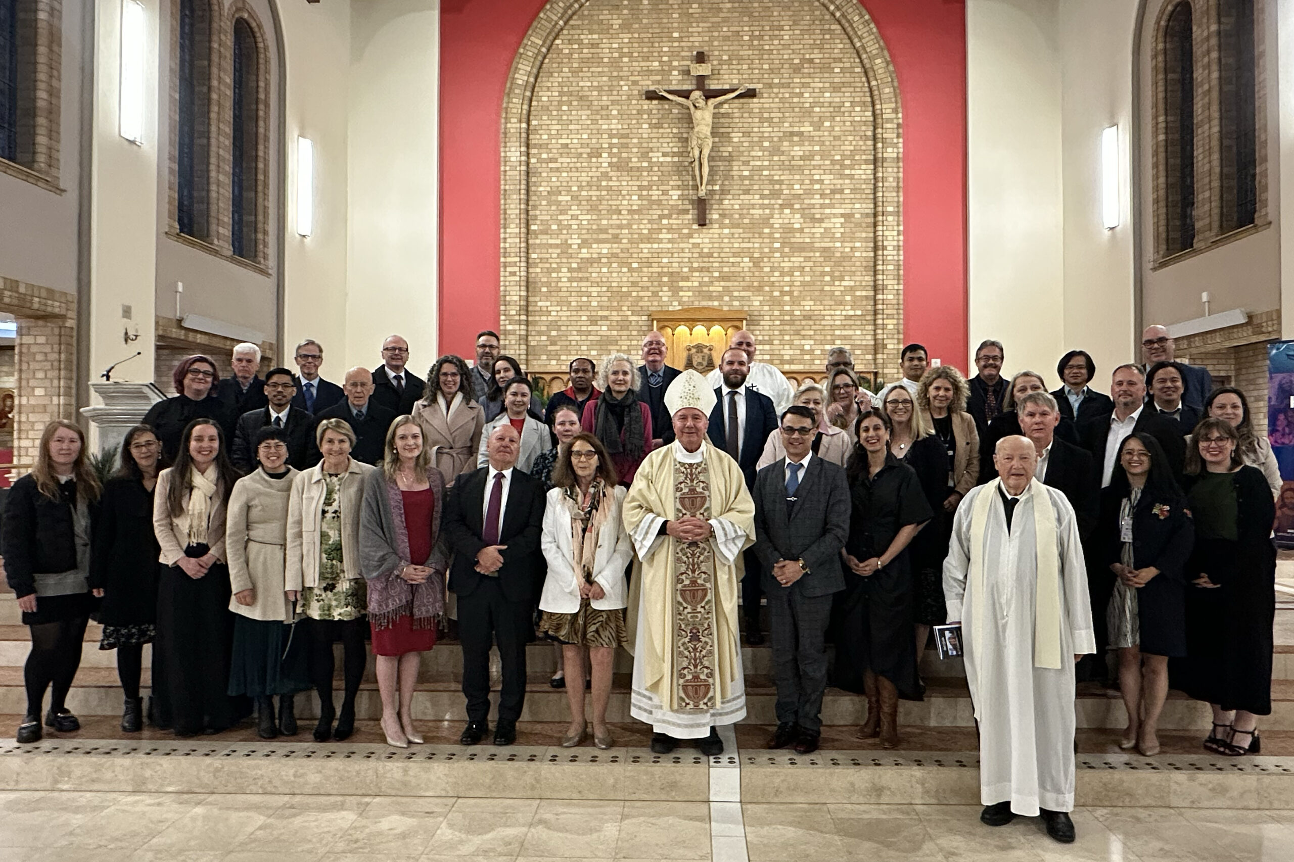 Delegates from the 2025 ACPA Conference with Archbishop Christopher Prowse of Canberra-Goulburn following their conference Mass. Image: Jamie O'Brien/ACPA/Supplied...
