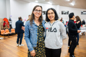 Parishioner Vanessa Sultana (left) following the installation of Fr Abraham Kunnatholy CMI as parish priest of Corpus Christi Parish, Cranebrook, in May 2025. Image: Alphonsus Fok/Diocese of Parramatta...