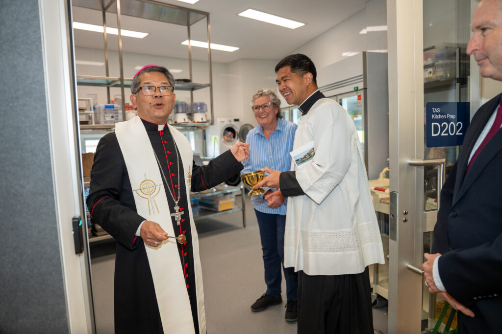 Bishop Vincent Long OFM Conv (left), Bishop of Parramatta, with Fr Menard Gaspi (right), Assistant Priest of St Bernadette’s Parish, Castle Hill, during the blessing and opening of the Research and Creative Learning Centre of Gilroy Catholic College. Image: Stuart Matters/Catholic Schools Parramatta Diocese