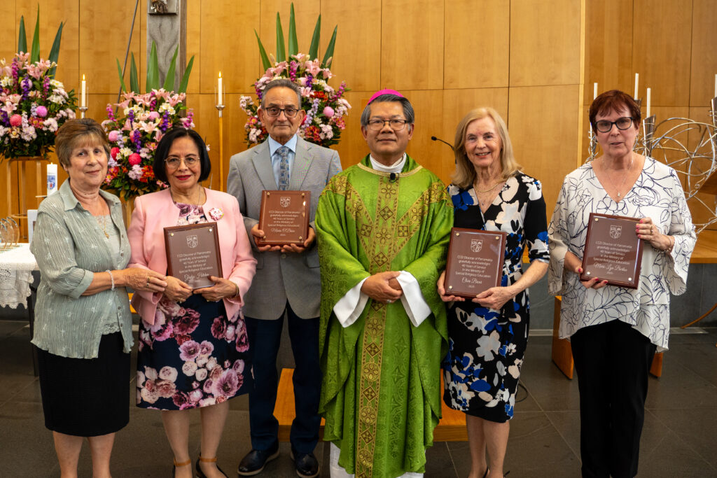 Bishop Vincent with the 20 Years of service award recipients during the 2025 Confraternity of Christian Doctrine (CCD) Mass and Awards Presentation at St Patrick’s Cathedral, Parramatta. Image: Mary Brazell/Diocese of Parramatta