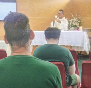 Bishop Vincent Long during the Mass for inmates at John Moroney Correctional Centre....