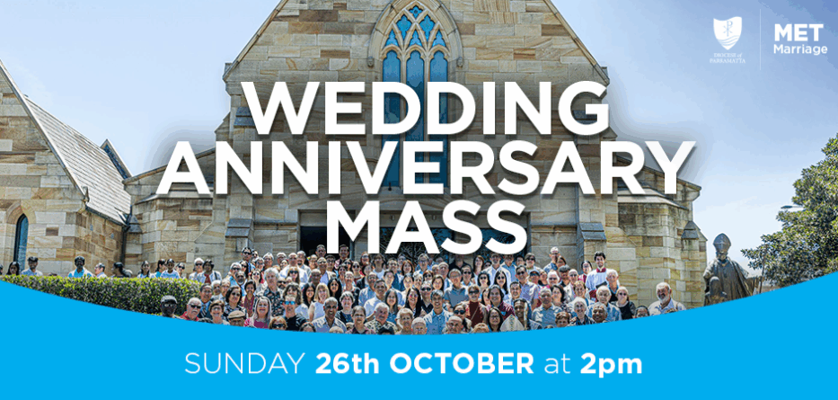 Join us for the annual Diocesan Wedding Anniversary Mass to be held on Sunday 26 October at 2pm at St Patrick’s Cathedral, Parramatta, followed by afternoon tea. Those celebrating a significant wedding anniversary will receive a certificate. If you would like to attend, please register your name, numbers attending and any dietary requirements. Family and friends are welcome. RSVP to marriage@parracatholic.org or call 0408 233 478 by 20 October.