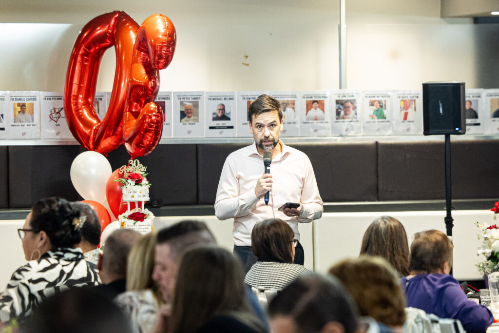 Parishioner Vasco Gil speaks during the 30th anniversary celebrations of the Augustinian community at Holy Spirit Parish, St Clair-Erskine Park. Image: Alphonsus Fok/Diocese of Parramatta