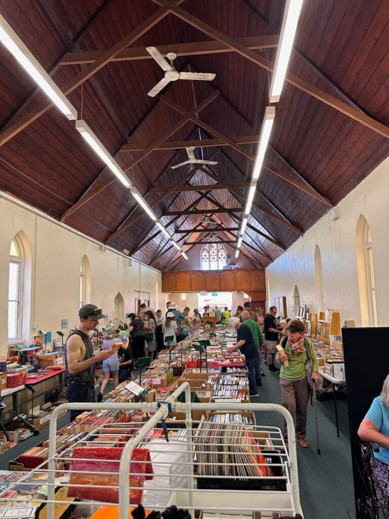 Items for sale at stalls inside the old church at the Spring Fair at St Monica’s Church, Richmond. Image: St Monica’s Primary School Richmond/Facebook