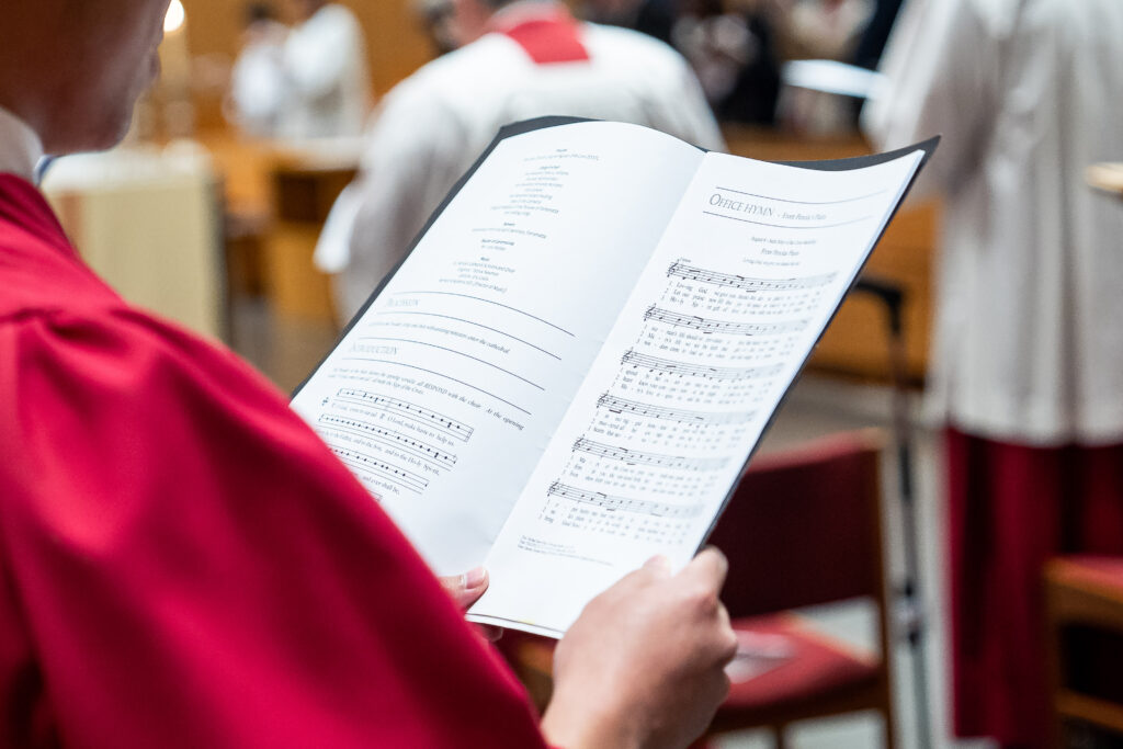 A hymn booklet held by a member of the St Patrick’s Cathedral Choir. Image: Alphonsus Fok/Diocese of Parramatta