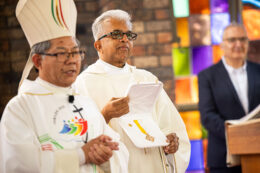 Parish Priest Fr Clifford D'souza MSFS with the Benemerenti Medal. Image: Alphonsus Fok/Diocese of Parramatta...