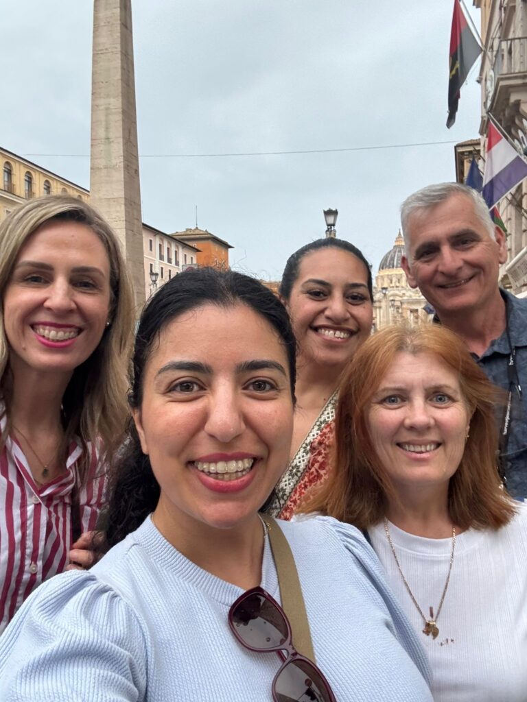 Ann Boutros (second left) with fellow pilgrims Anita Sulentic, Rachael Kama, Denise and Patrick Carroll in Rome. Image: Supplied