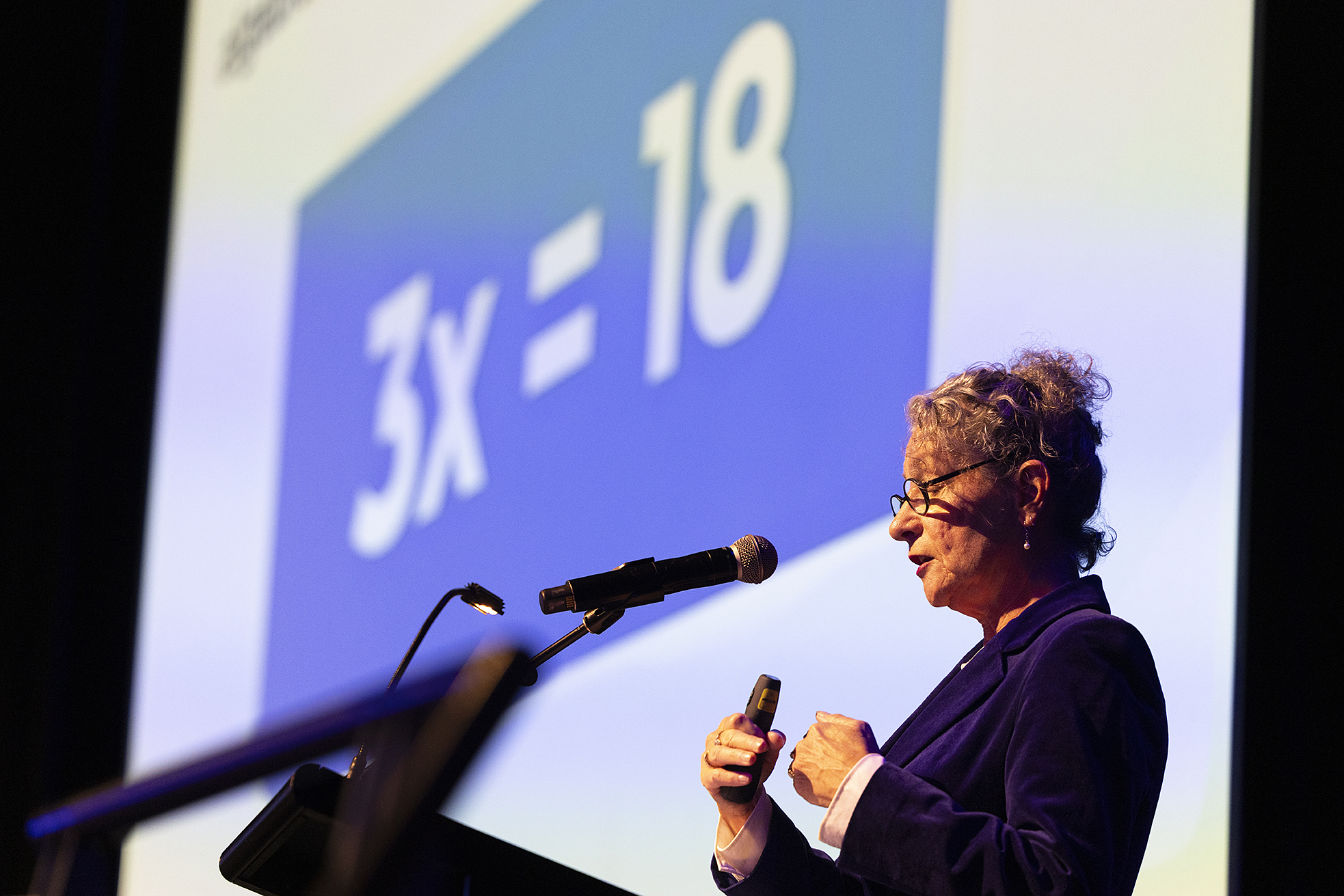 Dr Jenny Donovan delivers the 2025 Catholic Schools Parramatta Diocese Ann D Clark lecture in Penrith in August 2025. Image: Gene Ramirez/CSPD...