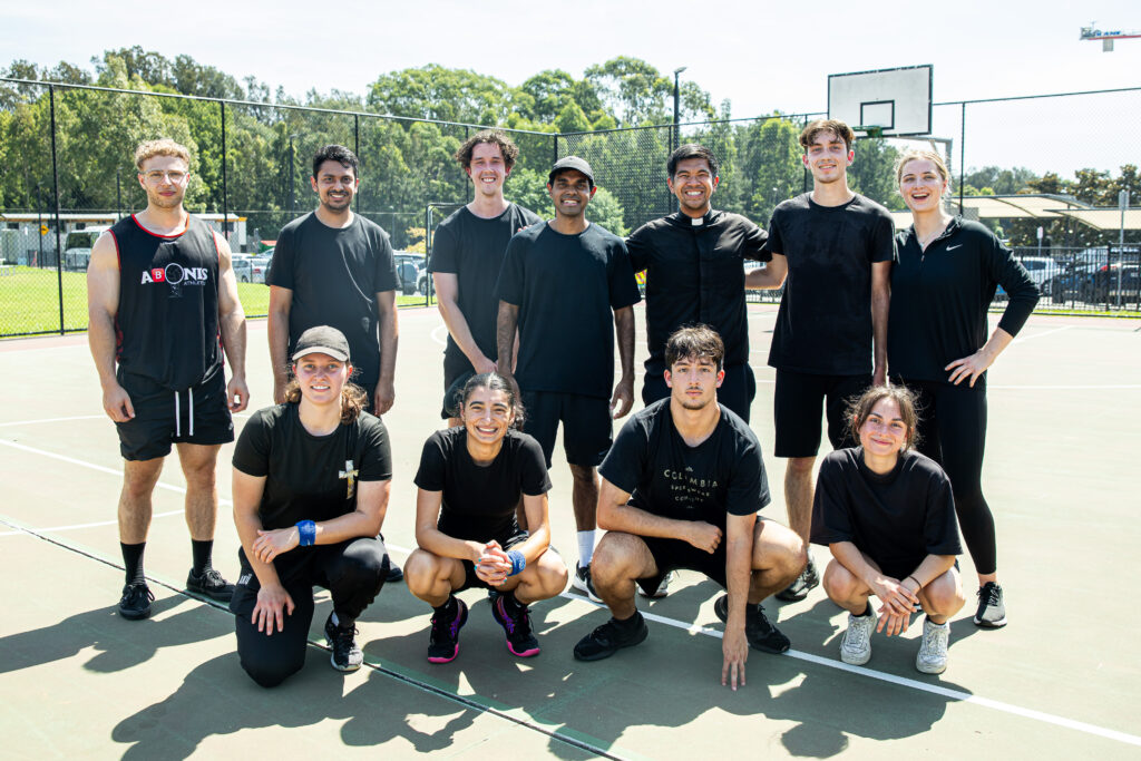 Fr Menard Gaspi with the sports team from St Bernadette’s Parish, Castle Hill. Image: Alphonsus Fok/ Diocese of Parramatta